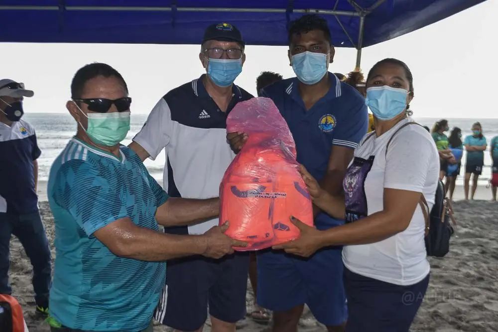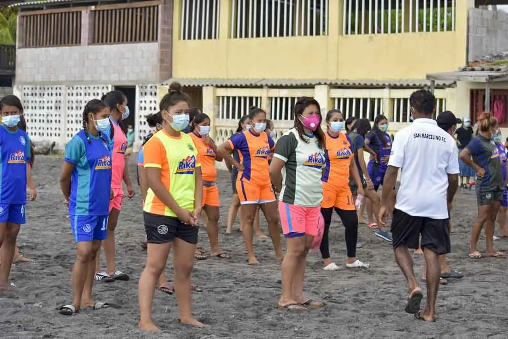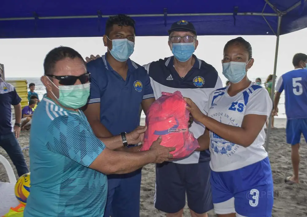 El Pasado Viernes 23 de Octubre de 2020 se re-equipo a Escuela de Fútbol Playa San Marcelino Femenino, ubicada en el municipio de San Pedro Masahuat, departamento de La Paz, beneficiando a mas de 90 niñas, jóvenes y mujeres, haciendo entrega de todo el material deportivos (pelotas, silbatos, cronómetros, uniformes, entre otros implementos deportivos), tomando todas las medidas de bioseguridad.
