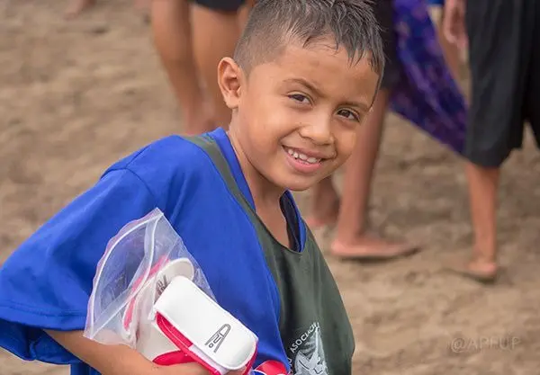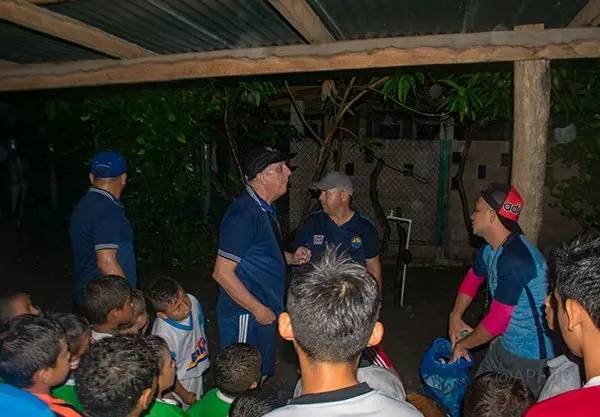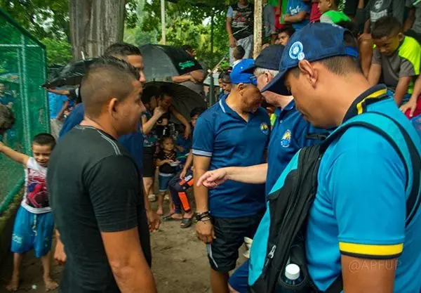 A pesar de las condiciones climáticas del pasado viernes 27 de Septiembre de 2019 La Asociación Pro Fútbol Playa no se detuvo con las re-equipaciones de tres Escuelas de Fútbol Playa, beneficiando a mas de 400 niños y jóvenes en Isla San Sebastián, Isla La Pirraya e Isla Rancho Viejo entregando todo el material deportivo para que los niños y jóvenes continúen con la practica de esta modalidad de juego, creando un sano esparcimiento y apoyando la prevención de la violencia por medio del deporte.