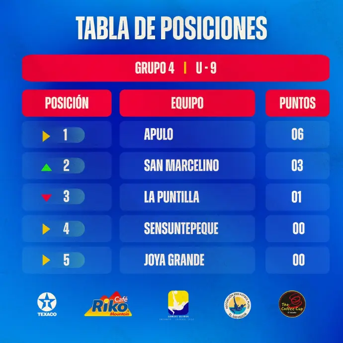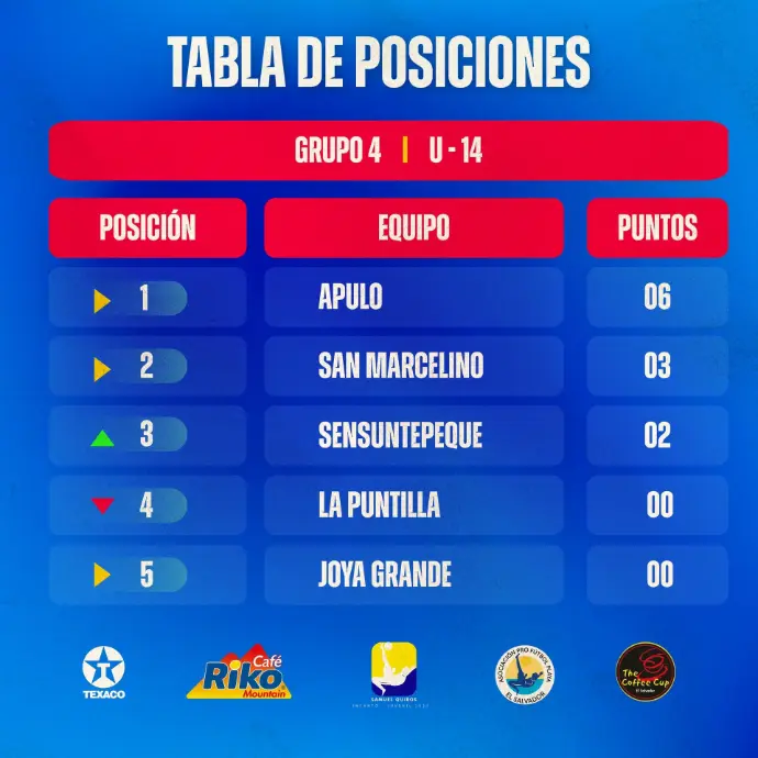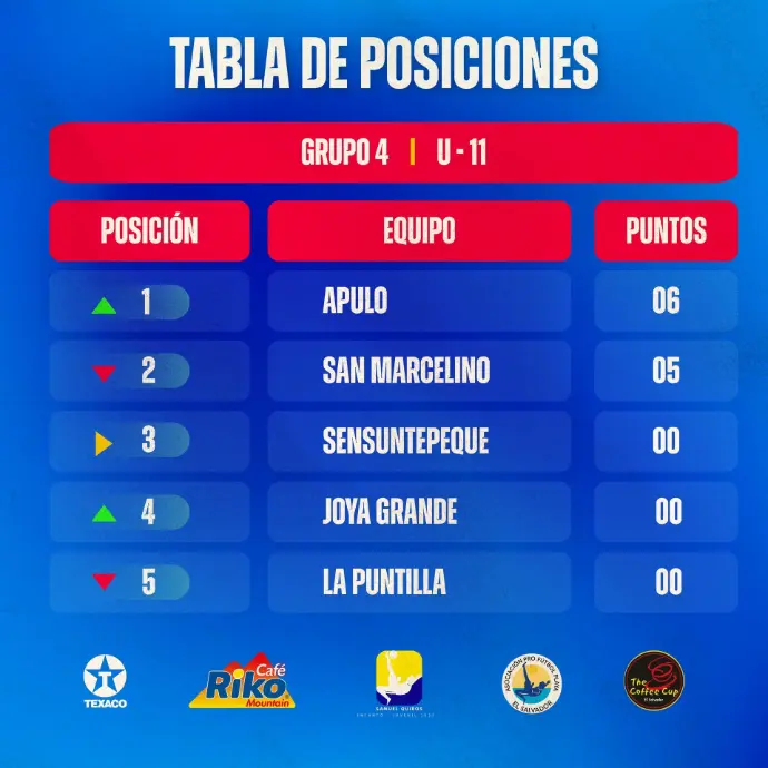 Tabla de Posiciones del Grupo 4 - V Liga Infanto-Juvenil Samuel Quirós